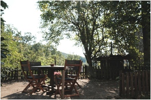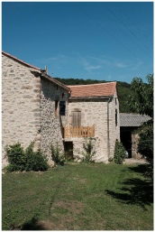 Chataignier is also a two-bedroom cottage, with one double and one twin bedded room on the first floor where the bathroom is also located. There is a separate kitchen/dining room in this gite that has a range of fitted units and includes a built in electric oven, gas hob, microwave, large fridge/freezer and small dishwasher. The sitting room is furnished with two comfortable sofas, occasional tables etc; a log-burning stove is the focus of winter nights. An open tread pine staircase leads to the first floor and bed rooms .